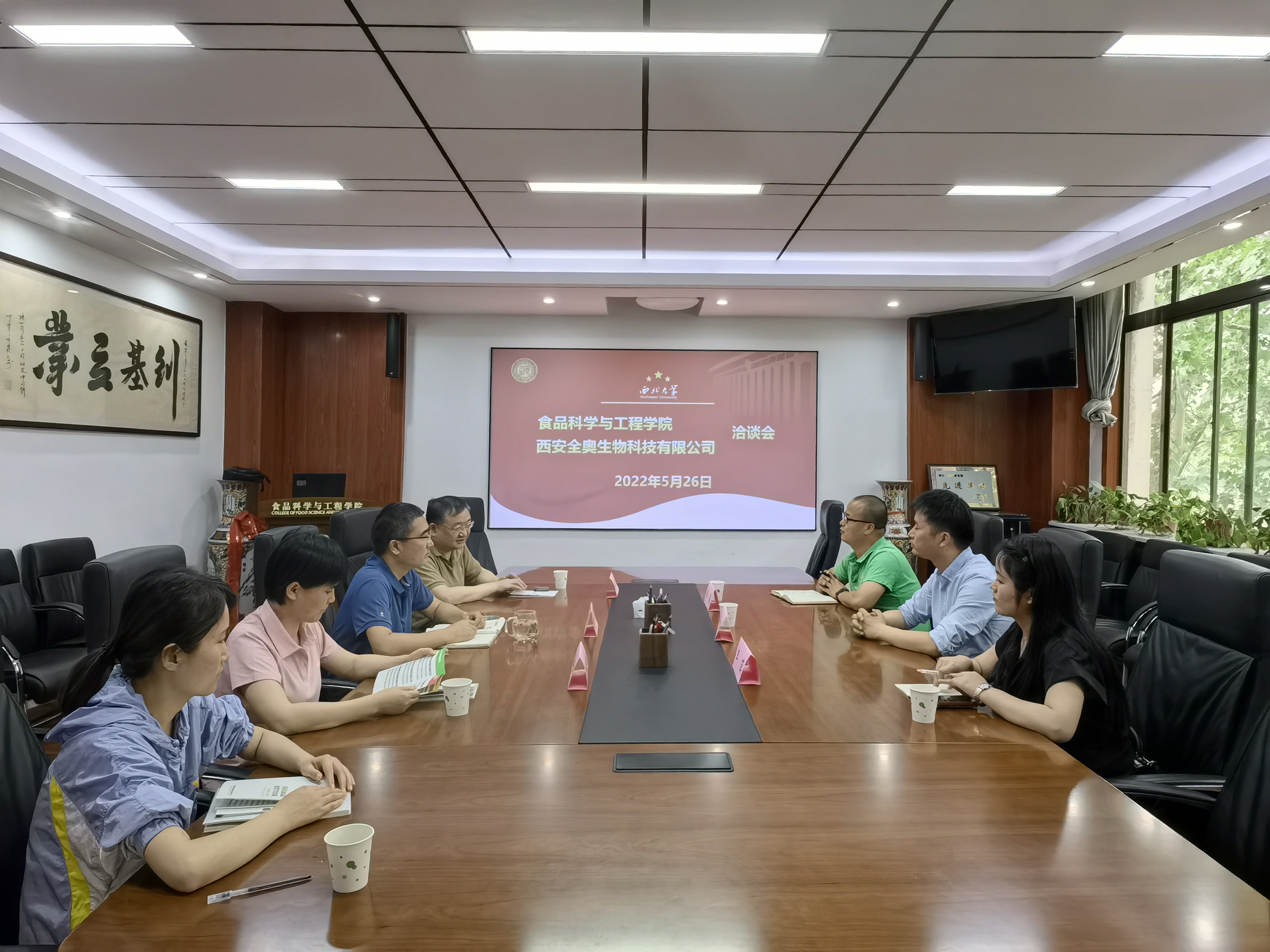 5月26日下午,西安全奥生物科技有限公司总经理李言威等一行来院洽谈校企合作。学院赵会武副院长、白乃生教授、骆艳娥教授、郭森老师参加了洽谈会。