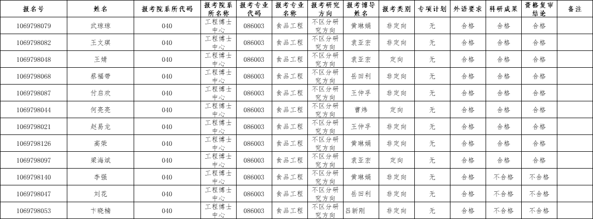 导师组1:岳田利教授、袁亚宏教授、骆艳娥教授、盛庆林教授、白乃生教授,招生名额2名。