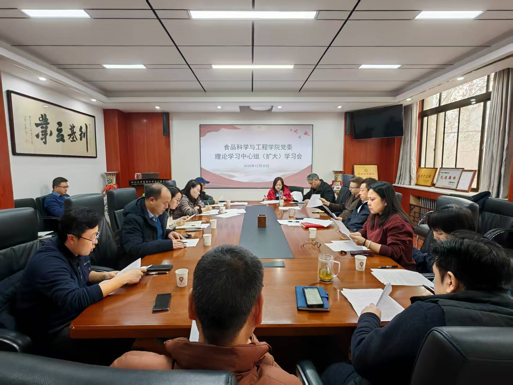 12月30日下午,学院党委召开理论学习中心组集体学习(扩大)会,学院党政班子成员、工会主席、科级干部、各教工党支部书记和学院学术分委员会委员参加会议。会议由学院党委书记刘晓忠主持。