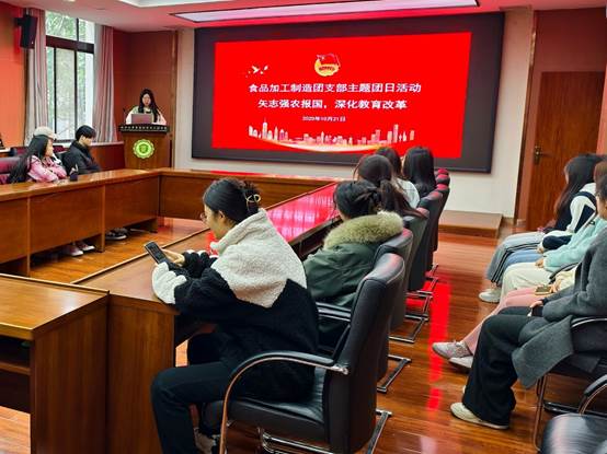 为深入学习习近平总书记关于青年工作的重要思想,食品学院团委近期组织各团支部开展了一系列主题团日活动,旨在加强团员思想引领,培养全面发展的新时代好青年。10月21日上午,学院食品加工制造团支部举行主题团日活动,认真学习学习习近平总书记给中国农业大学全体师生的重要回信精神。